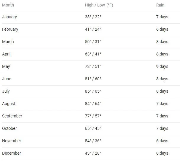 Using the data above, the average high and lows data is recorded and assigned a season based on the average high temperature. Carlsbad microclimate does not get cold enough to qualify for a cold or hot season. Plan your warm loving plants to mature during Jul, Aug and Sept. Keep that in mind when planning.